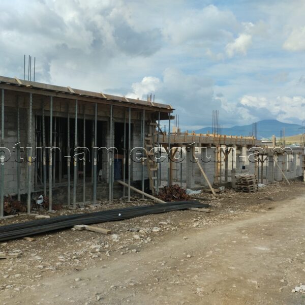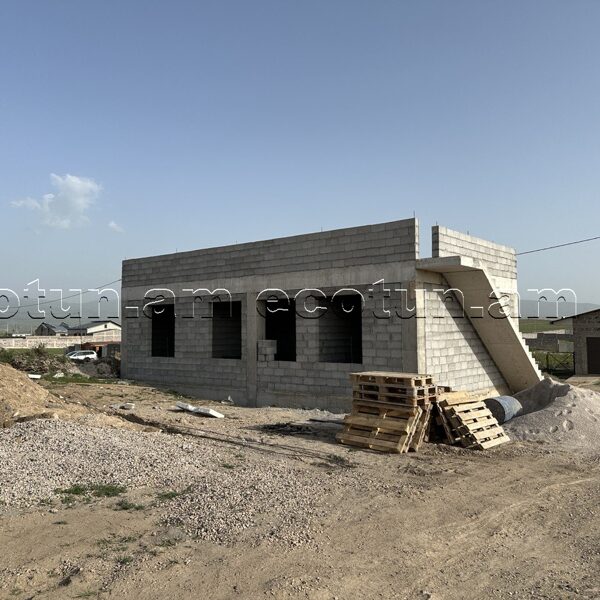 Экодома построены на монолитной железобетонной конструкции, у которых 0-ая степень, т.е. пол выше над уровнем земли 0,6-1 метров. Экостены 3-х слойные, наружный фасадный экоблок- 7см, железобетонный монолит- 7см и внутренний экоблок 7см. Каждая стена составляет 7см и всего около 21см. Стены изготовлены производственным экоблоком компании, которые закалены, уплотнены из перлита, водонепроницаемой и звукоизоляции. Экологическое чистое сырье, используемая для производства экоблока, без каких-либо химических добавок.